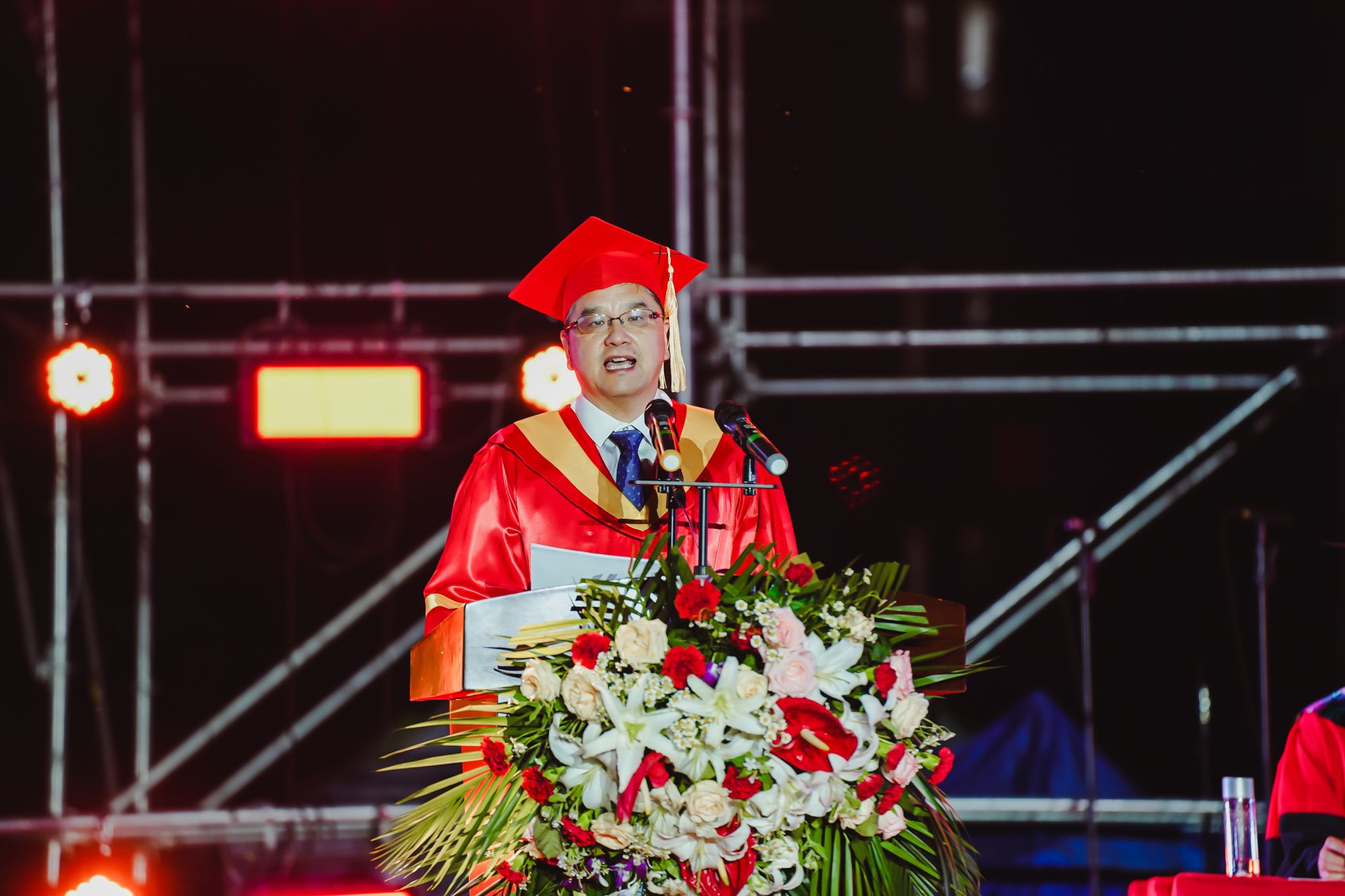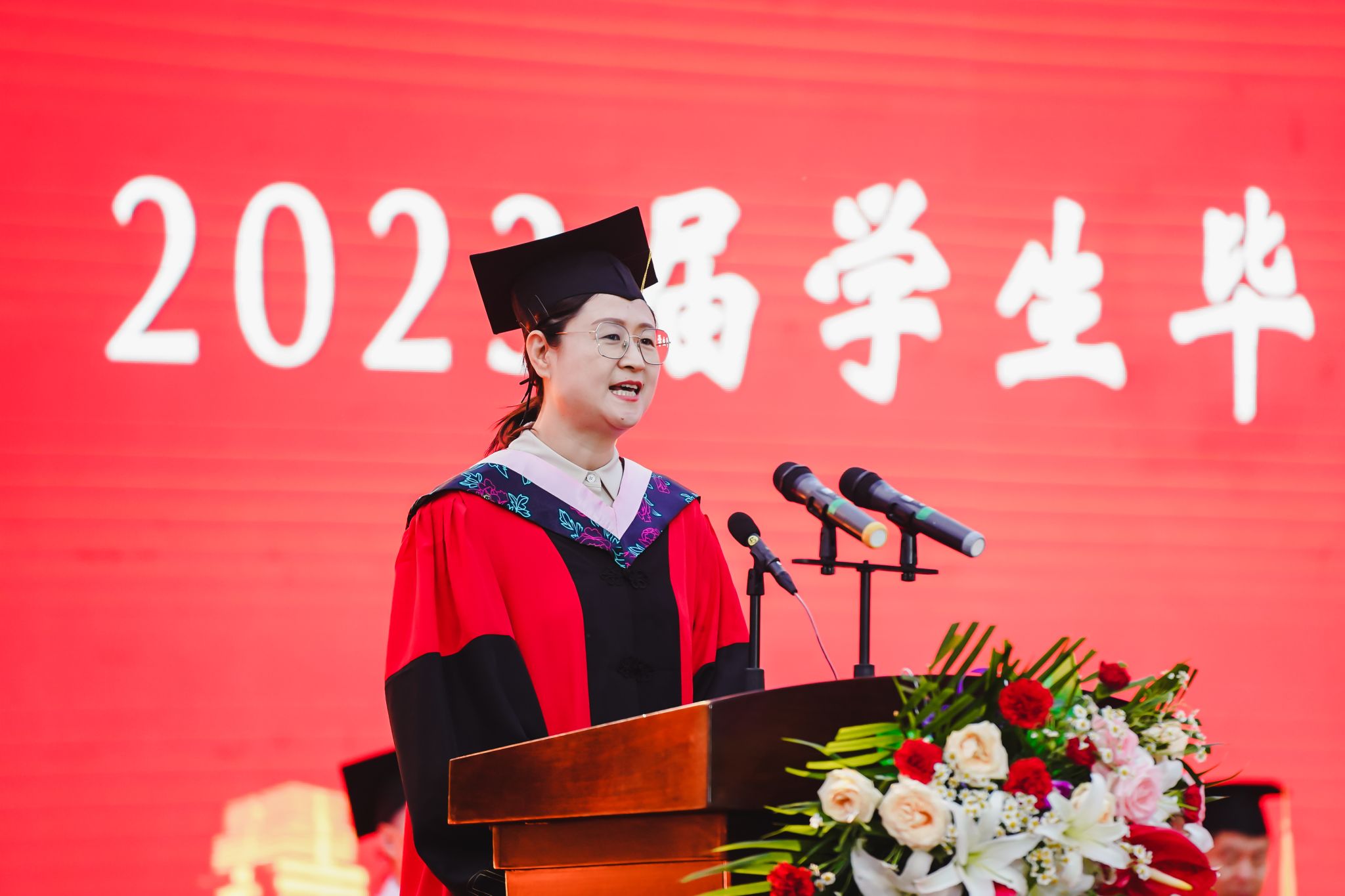 校學位評定委員會主席、黨委副書記、校長張珂為2023屆博士研究生、碩士研究生、本科生代表撥穗授位并合影留念。他以“牢記母校囑托 做新時代一朵奔涌的浪花”為題,對全體畢業生寄以殷殷祝福和囑托。他回顧了2023屆畢業生求學期間學校日新月異的發展變化和同學們在校期間的經歷,表示經過考驗錘煉和學習實踐,同學們的知識儲備更加豐富,思考問題的深度和能力與日俱增,綜合素質有了質的提升,學校為擁有如此優秀的畢業生感到自豪和驕傲。他希望2023屆畢業生心懷“國之大者”,做人生的追光者;練就過硬本領,做新時代的奮斗者;無畏困難和挫折,做突破自我的孤勇者;奔騰不息,奮斗不止,做勇立潮頭的弄潮者。一代人有一代人的使命,一代人有一代人的擔當,黨的二十大擘畫了以中國式現代化全面推進中華民族偉大復興的宏偉藍圖,張珂校長最后向全體畢業生發出號召,希望畢業生們把在工大的所學轉化為砥礪前行的動力,在時代的潮涌下努力練就過硬本領,在青春賽道上奮力奔跑,不負韶華、不負盛世,在全面建設社會主義現代化國家新征程上做出沈工大人應有的貢獻。