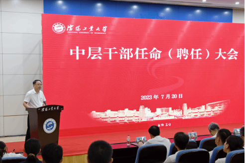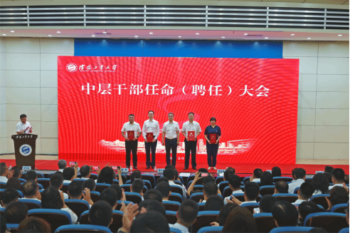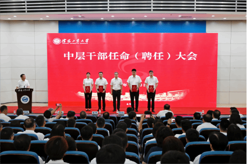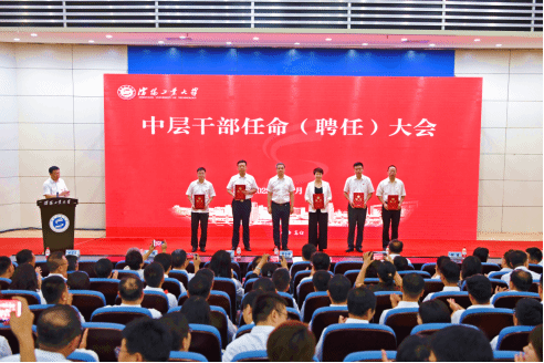 賈玉明在任命大會(huì)上講話。他指出,本次中層領(lǐng)導(dǎo)班子和領(lǐng)導(dǎo)干部換屆工作堅(jiān)持以習(xí)近平新時(shí)代中國(guó)特色社會(huì)主義思想為指導(dǎo),堅(jiān)持以習(xí)近平總書記關(guān)于加強(qiáng)干部隊(duì)伍建設(shè)的重要論述和新時(shí)代黨的組織路線為根本遵循,堅(jiān)持新時(shí)代好干部標(biāo)準(zhǔn),對(duì)位學(xué)校事業(yè)發(fā)展需要,大力營(yíng)造風(fēng)清氣正選人用人氛圍。學(xué)校黨委在兩個(gè)多月里,加強(qiáng)領(lǐng)導(dǎo)、精心謀劃、周密組織、統(tǒng)籌推進(jìn),確保換屆工作平穩(wěn)有序。本次換屆,學(xué)校黨委共任命182名中層干部,其中正職84名,副職98名。新提拔干部85名,其中正職38名,副職47名,干部隊(duì)伍年齡結(jié)構(gòu)、專業(yè)類型結(jié)構(gòu)進(jìn)一步優(yōu)化,學(xué)歷水平進(jìn)一步提升,各級(jí)各類干部?jī)?chǔ)備和梯隊(duì)建設(shè)有效加強(qiáng)。本次換屆中有37名中層干部因?yàn)槟挲g和本人意愿等原因不再繼續(xù)任職,賈玉明滿懷深情地對(duì)他們長(zhǎng)期扎根本職工作崗位,為學(xué)校發(fā)展建設(shè)所作出的貢獻(xiàn)表示由衷的敬意和感謝。