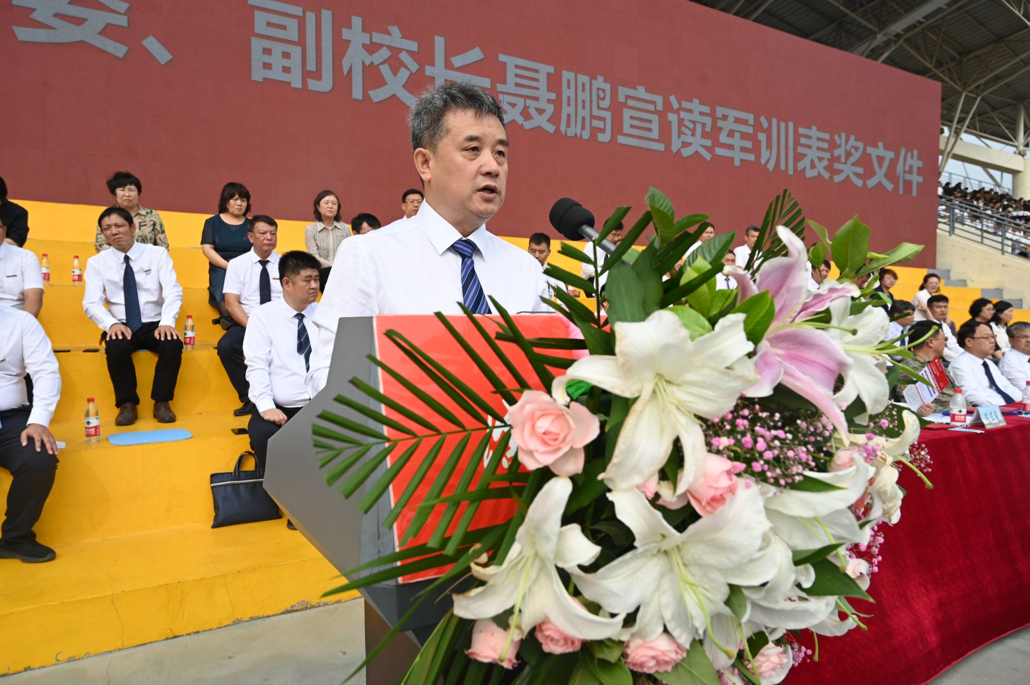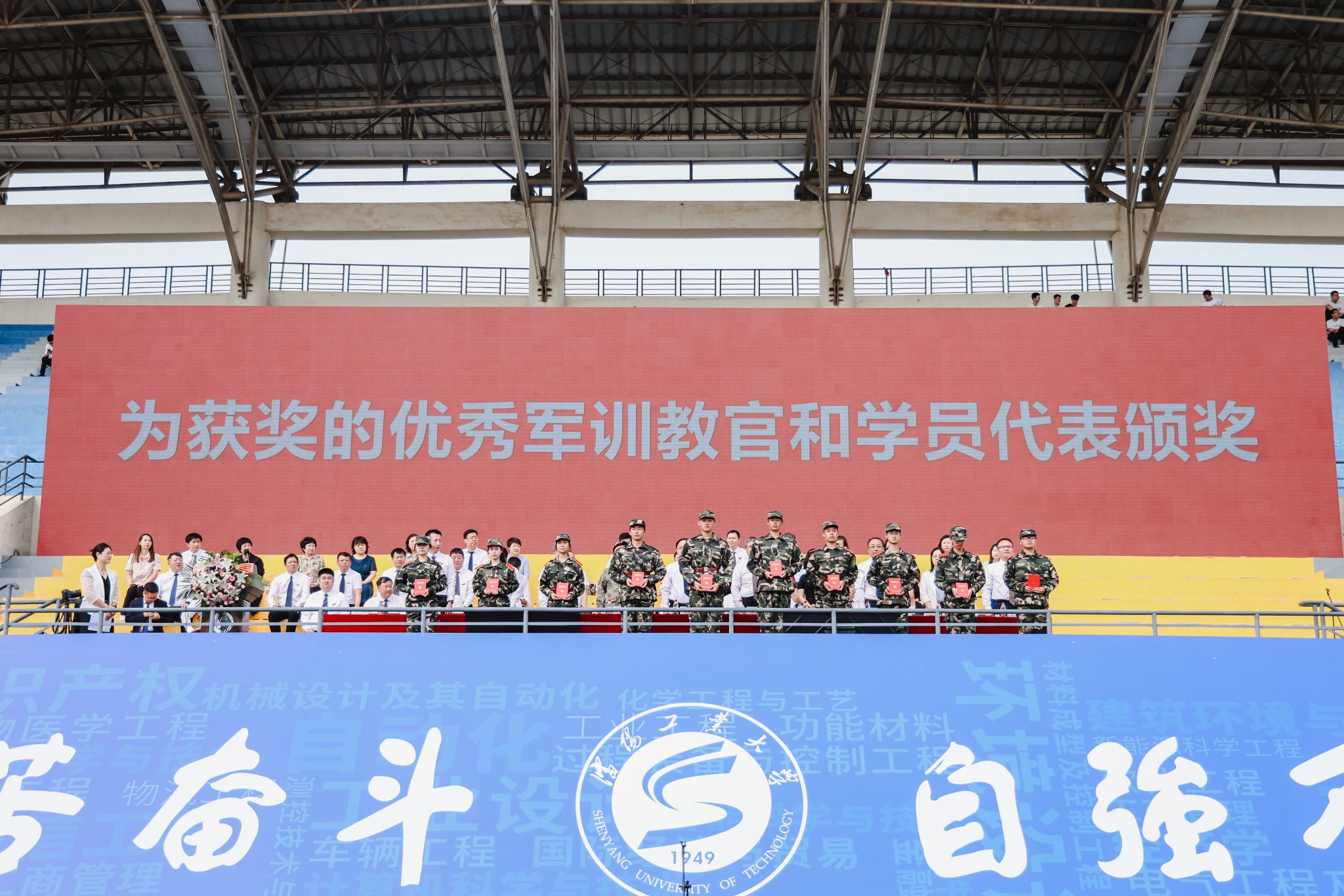 會上,黨委常委、副校長聶鵬宣讀了軍訓表獎文件,與會領導為獲獎的優秀軍訓教官和學員代表頒獎。
