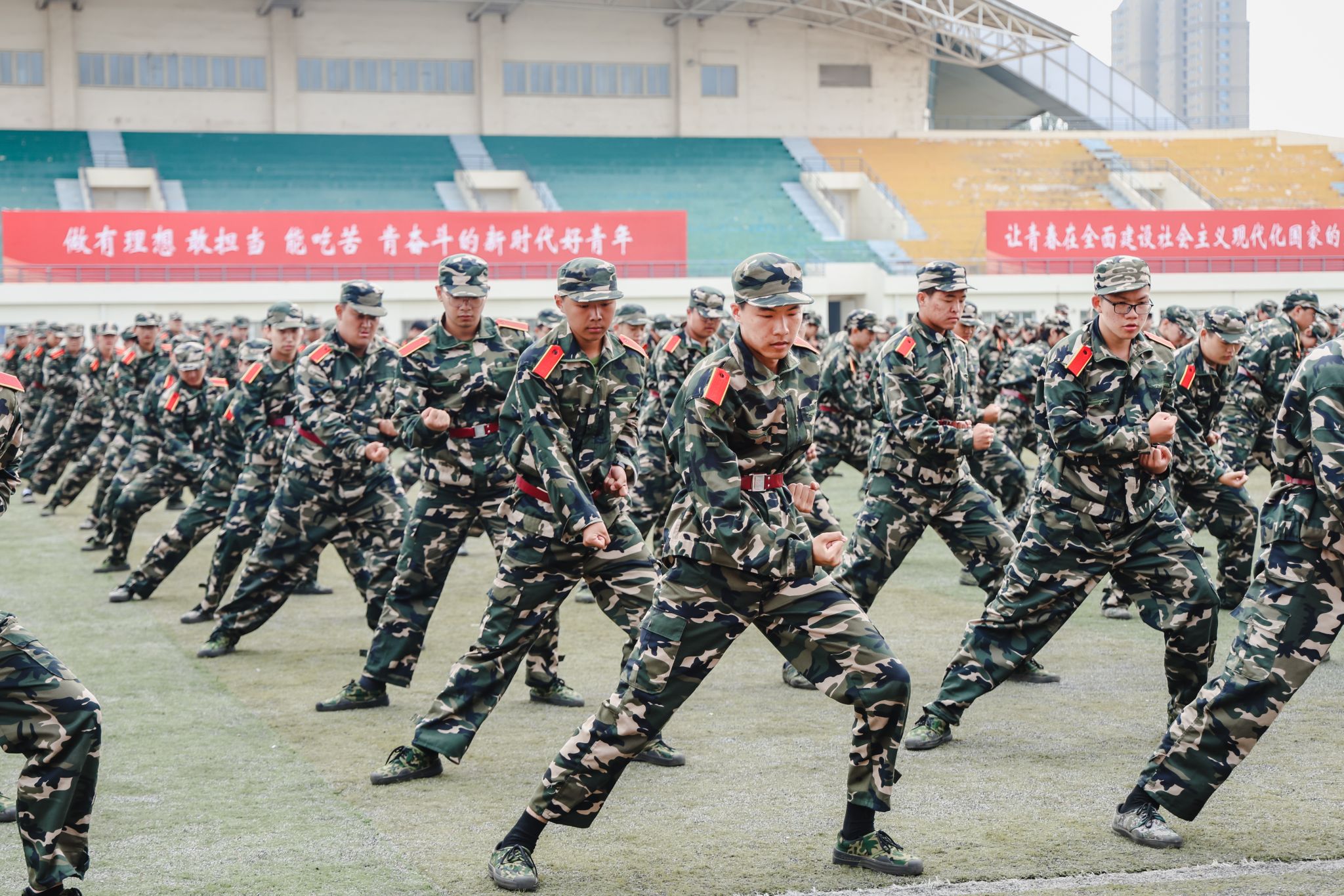 兩千多名參訓學員進行了刺殺操、擒敵拳、應急棍、匕首操、軍體拳、擒拿格斗、戰術、愛國愛校操等軍訓科目表演。他們精神抖擻,英姿勃發,一招一式動作果斷、步調一致,充分展現了入學以來的訓練成果和青春朝氣,不時贏得現場師生的陣陣掌聲。